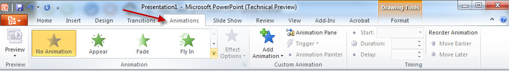 In PowerPoint, the animations and transitions have been separated into independent tabs, making it easier for users to add and change animations.